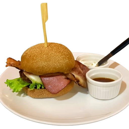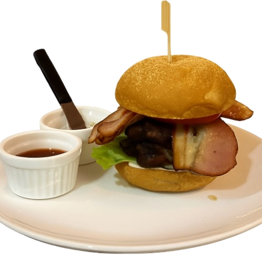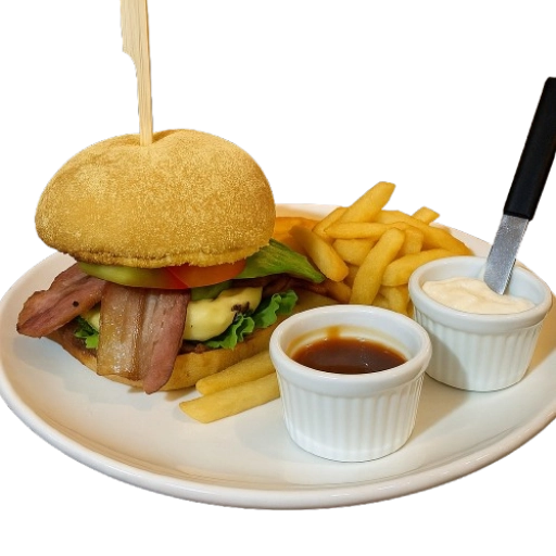 Pão Australiano, hambúrguer bovino 160g, queijo, Fatias de Bacon, Alface e Maionese defumada da casa.