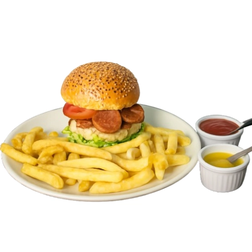 Pão Brioche, hambúrguer bovino 160g, queijo, Calabresa picante, Alface, Tomate e Maionese defumada da casa + Batata pe... Ver completo